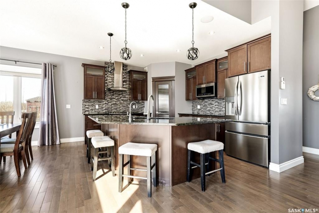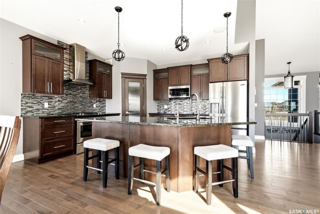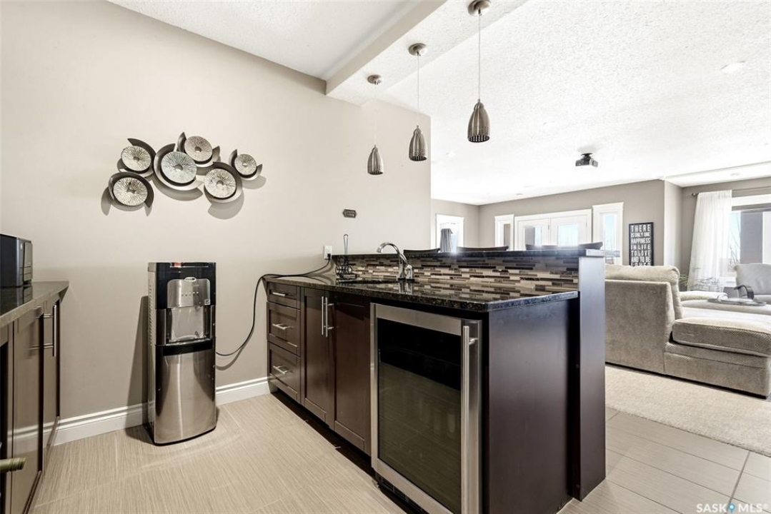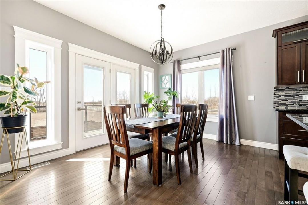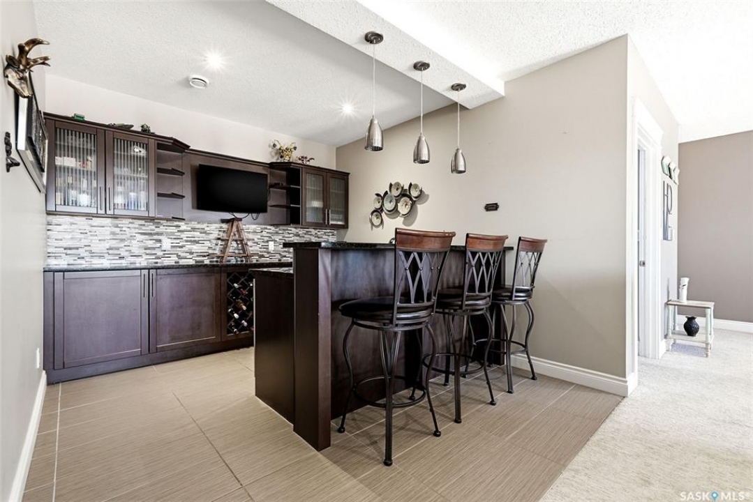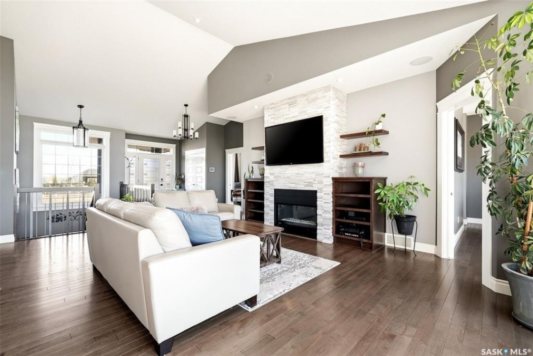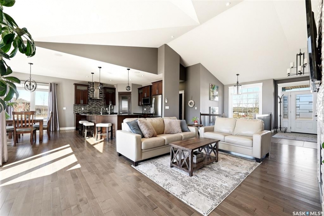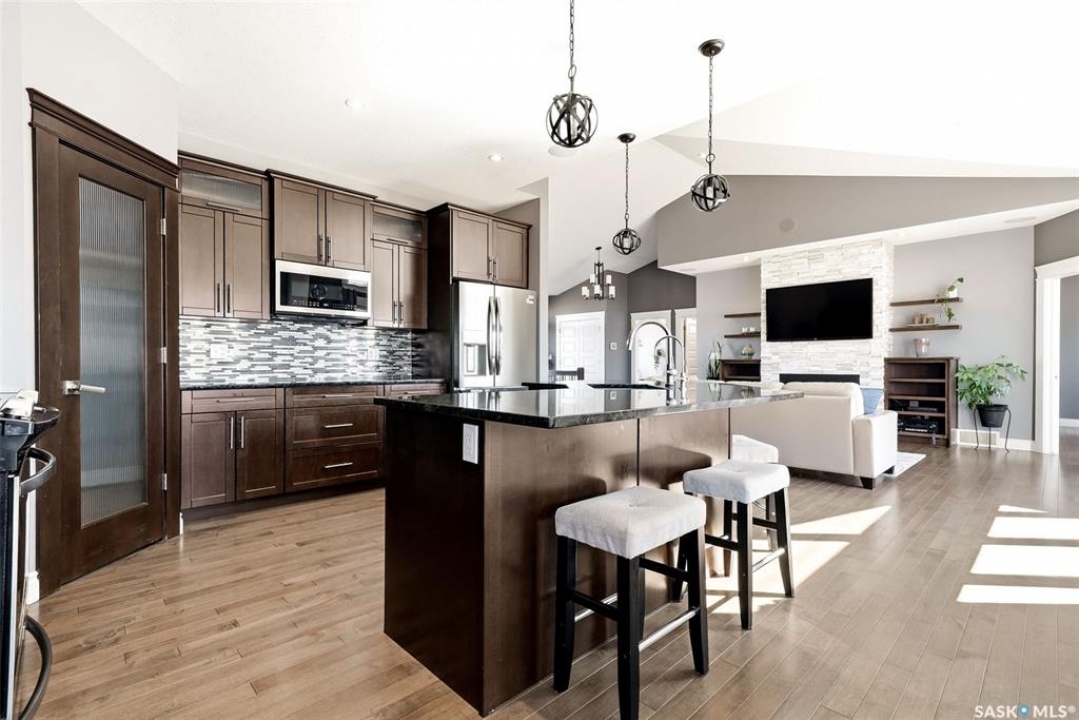 Welcome to 163 Rock Pointe Cr, an exceptional luxury acreage set on 3.49 beautifully maintained acres. This 2013-built walkout bungalow offers 1,632 sq ft of refined living space blending upscale comfort with the tranquility of country living. From the moment you step inside, you're greeted by soaring vaulted ceilings, engineered hardwood floors & an abundance of natural light streaming through expansive windows, creating a bright & inviting atmosphere. The living room is anchored by a stunning entertainment wall with gas fireplace, while built-in audio enhances both everyday living & entertaining. The thoughtfully designed layout flows effortlessly into the dining area & chef-inspired kitchen—complete with stone countertops, a large island, SS appliances, & an oversized walk-through pantry that provides exceptional storage & convenience. Step out onto the upper deck, perfectly positioned off the dining space, where you can entertain in style or simply unwind while taking in the peaceful prairie views. The main floor also features a well-appointed laundry/mudroom with a 2-pc bath & direct access to the triple attached heated garage. The primary suite is a true retreat, offering private deck access, a spacious walk-in closet & a 5-piece ensuite. An additional bedroom—perfect for a home office—& a 4-pc bathroom complete the main level. The fully developed walkout basement is designed for both relaxation & entertaining. A stylish wet bar welcomes you into the expansive recreation space, featuring built-in audio, projector, and screen—perfect for movie nights or hosting the big game. In-floor heating adds an extra layer of comfort throughout the lower level. Patio doors lead to a covered outdoor area with a hot tub and pergola, creating your own private oasis. Two additional bedrooms, a full 4-pc bath & an extra 2-pc bath ensure ample space for family & guests. This is a rare opportunity to own an incredible acreage just minutes from the city!