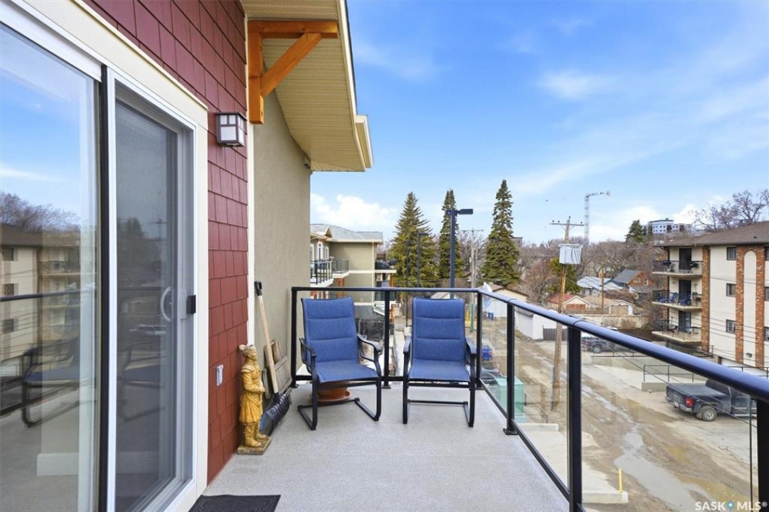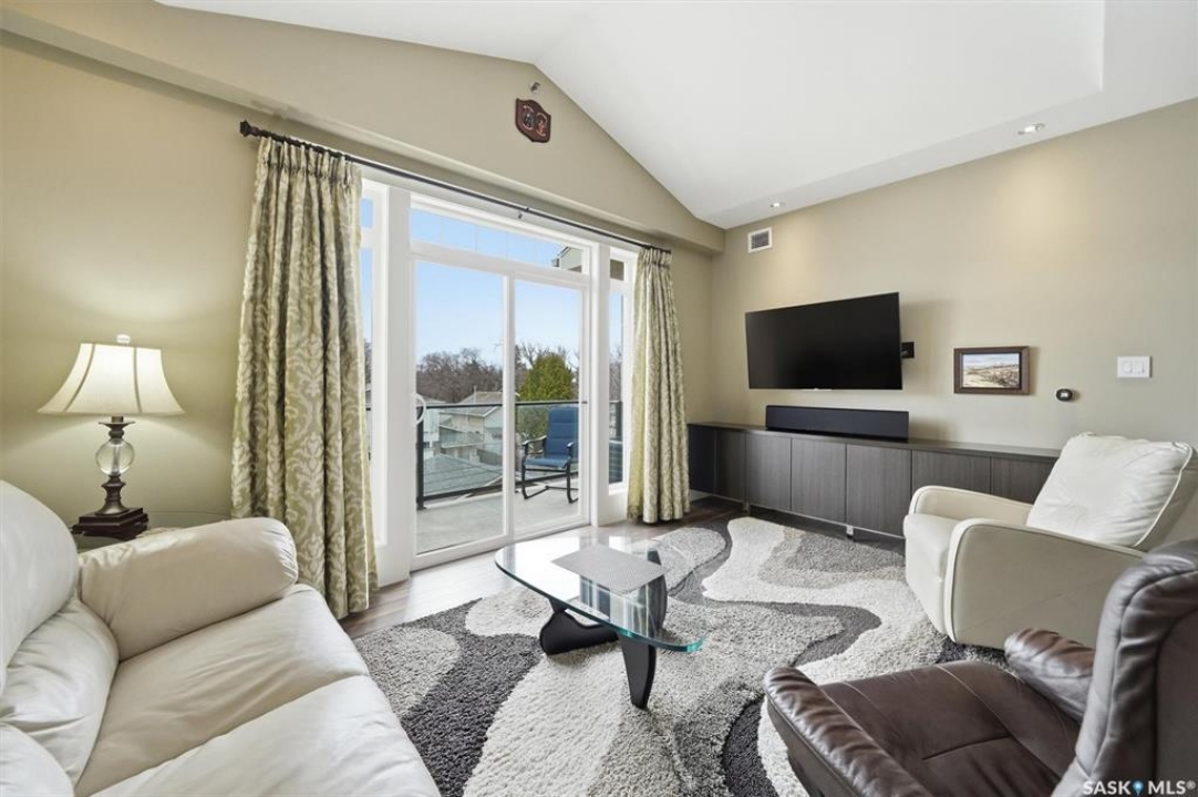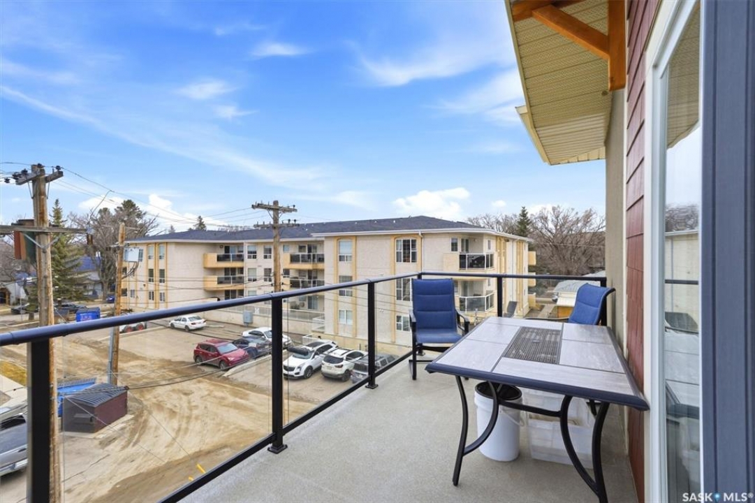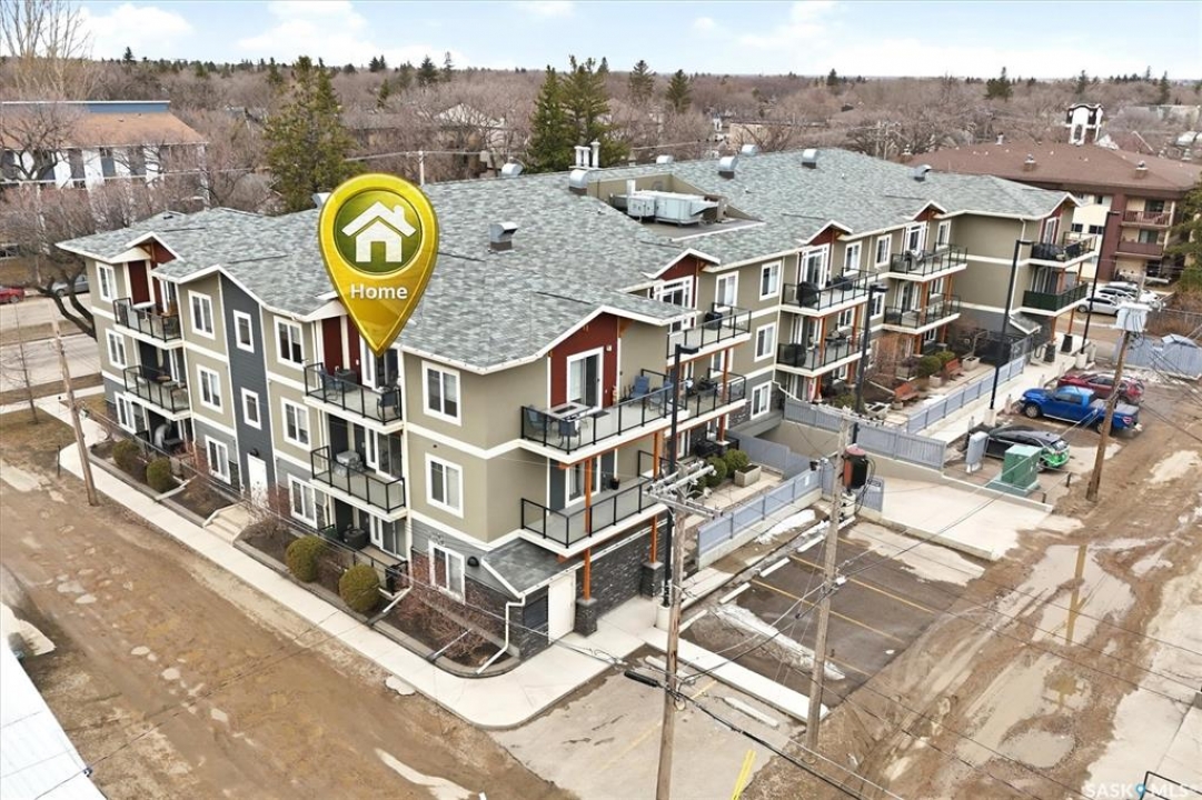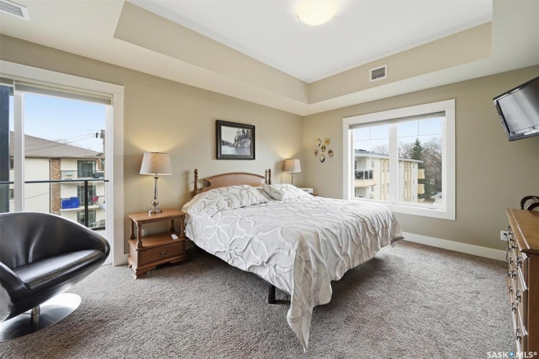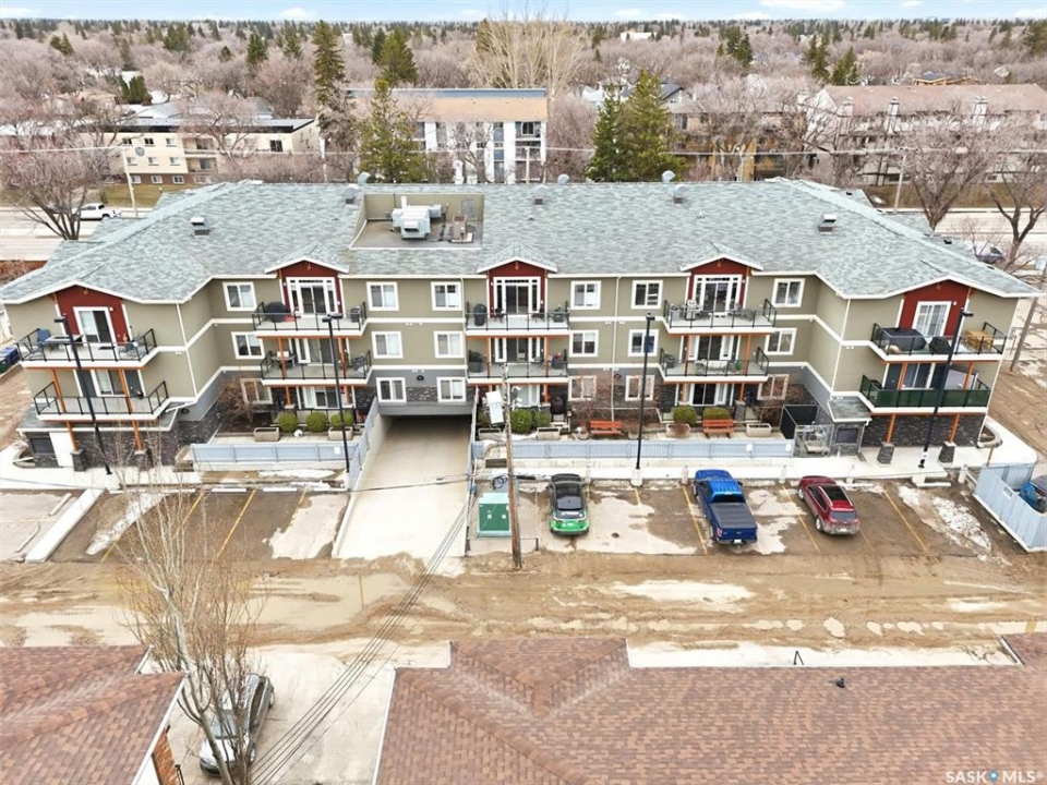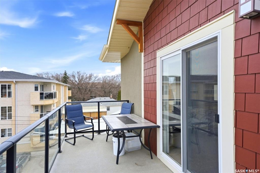 Welcome to “The Vestel” on 8th Street, where elevated condo living meets the vibrant Broadway lifestyle. Ideally located between Dufferin and Lansdowne, this well-maintained and professionally managed building offers exceptional walkability: just a 10-minute walk to the Broadway Bridge and 20 minutes to Midtown Plaza, with easy access to restaurants, coffee shops, schools, and everyday amenities. This top-floor corner unit features 1,132 sq ft of thoughtfully designed living space with 2 bedrooms and 2 bathrooms, highlighted by soaring peaked ceilings and an abundance of natural light that create a bright, open feel throughout. A standout feature of this home is the extensive custom built-in cabinetry, with over $10,000 invested in beautifully matched millwork that seamlessly integrates with the kitchen while providing exceptional storage and functionality, along with a dedicated water filtration system and drinking water tap for added convenience. Enjoy outdoor living with two spacious private balconies, one featuring natural gas hookups, while also enjoying access to a shared common-area patio perfect for gathering and relaxing. Additional features include three titled parking stalls, with two underground and one surface stall, an underground storage unit, central air conditioning, in-suite laundry, elevator access, and a heated concrete ramp to the underground parkade for added year-round comfort. The building also features pressurized hallways, which help reduce noise transfer and contain cooking odors within each suite, contributing to a quieter and more comfortable living environment. The complex is very well maintained and self managed, with owners who take pride in the building, creating a strong sense of community. This is a rare opportunity to own a spacious, top-floor condo with premium features in one of Saskatoon's most walkable and desirable locations.