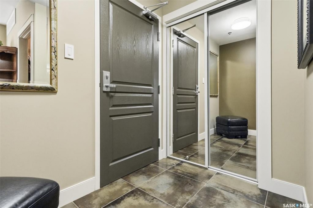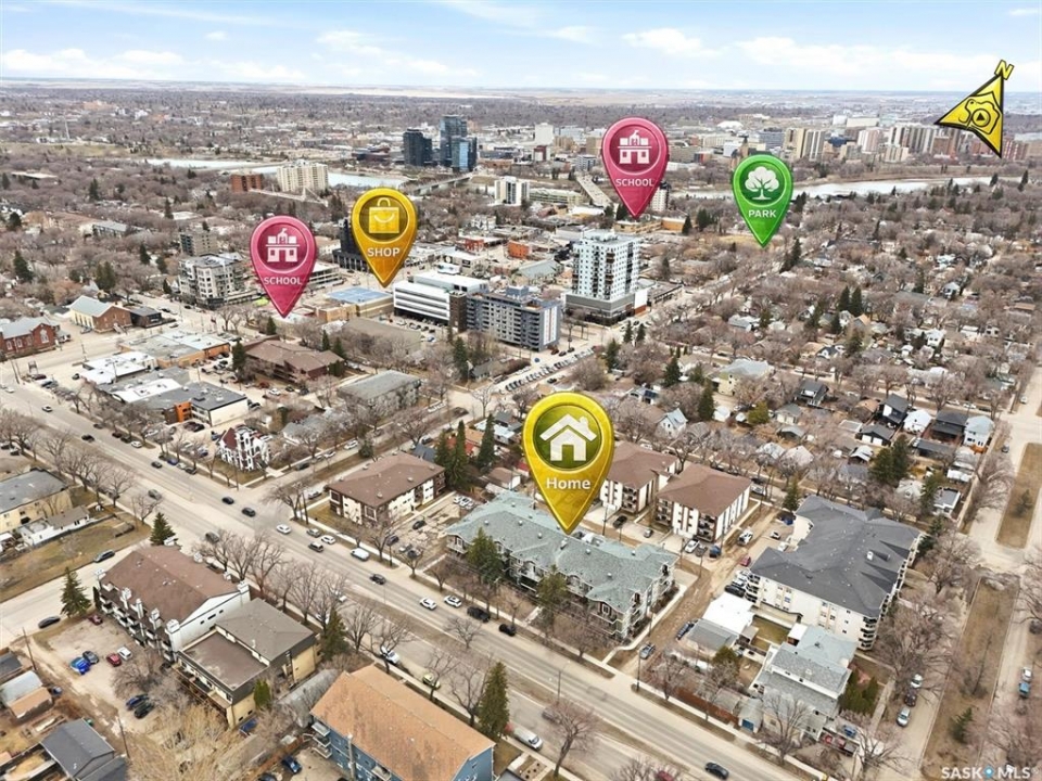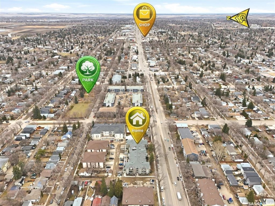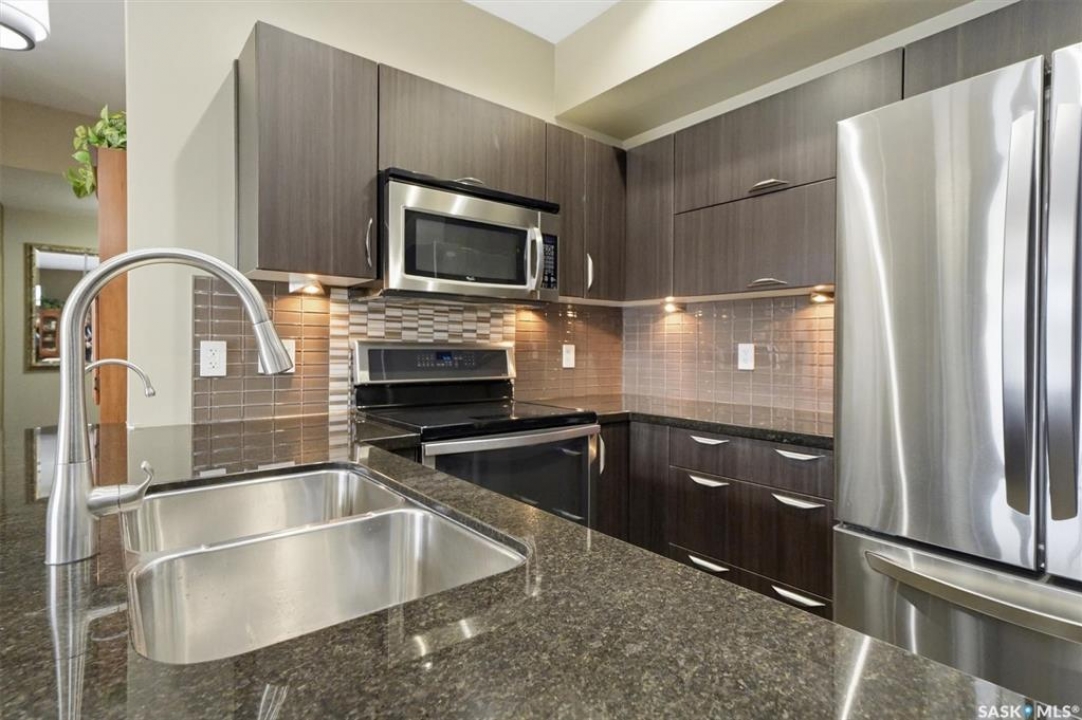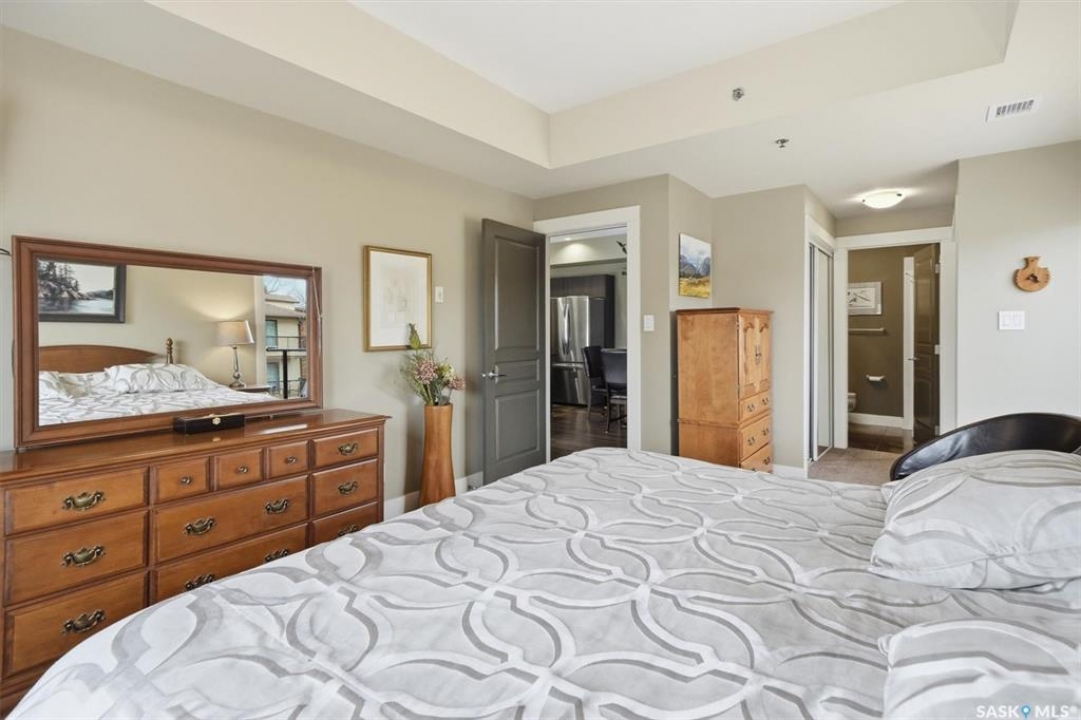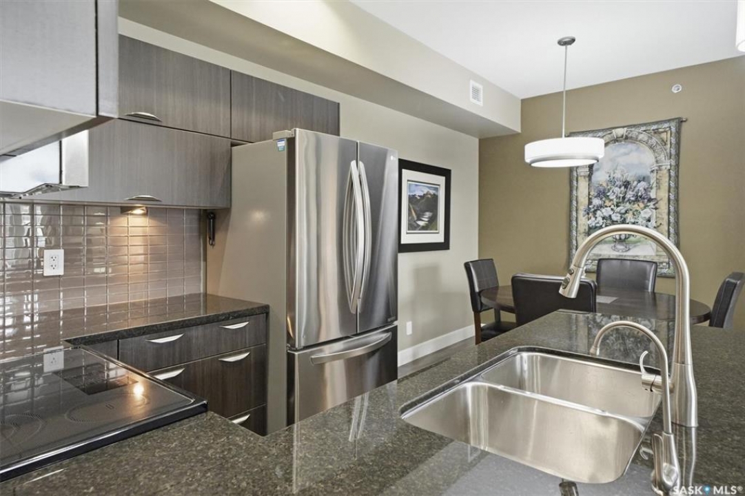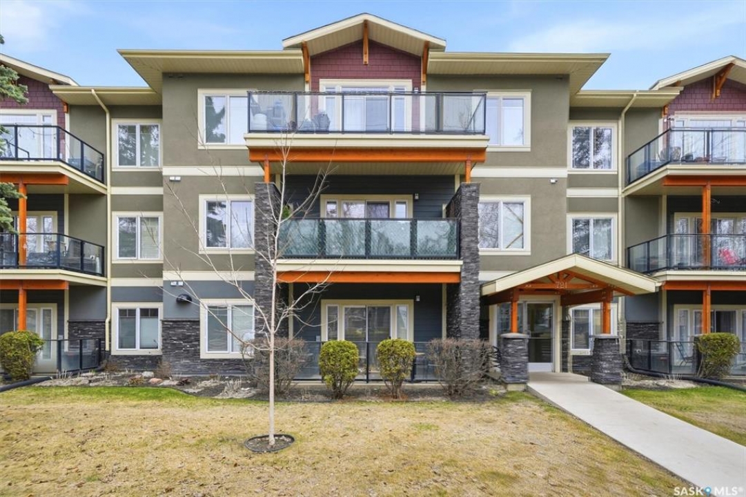 Welcome to “The Vestel” on 8th Street, where elevated condo living meets the vibrant Broadway lifestyle. Ideally located between Dufferin and Lansdowne, this well-maintained and professionally managed building offers exceptional walkability: just a 10-minute walk to the Broadway Bridge and 20 minutes to Midtown Plaza, with easy access to restaurants, coffee shops, schools, and everyday amenities. This top-floor corner unit features 1,132 sq ft of thoughtfully designed living space with 2 bedrooms and 2 bathrooms, highlighted by soaring peaked ceilings and an abundance of natural light that create a bright, open feel throughout. A standout feature of this home is the extensive custom built-in cabinetry, with over $10,000 invested in beautifully matched millwork that seamlessly integrates with the kitchen while providing exceptional storage and functionality, along with a dedicated water filtration system and drinking water tap for added convenience. Enjoy outdoor living with two spacious private balconies, one featuring natural gas hookups, while also enjoying access to a shared common-area patio perfect for gathering and relaxing. Additional features include three titled parking stalls, with two underground and one surface stall, an underground storage unit, central air conditioning, in-suite laundry, elevator access, and a heated concrete ramp to the underground parkade for added year-round comfort. The building also features pressurized hallways, which help reduce noise transfer and contain cooking odors within each suite, contributing to a quieter and more comfortable living environment. The complex is very well maintained and self managed, with owners who take pride in the building, creating a strong sense of community. This is a rare opportunity to own a spacious, top-floor condo with premium features in one of Saskatoon's most walkable and desirable locations.