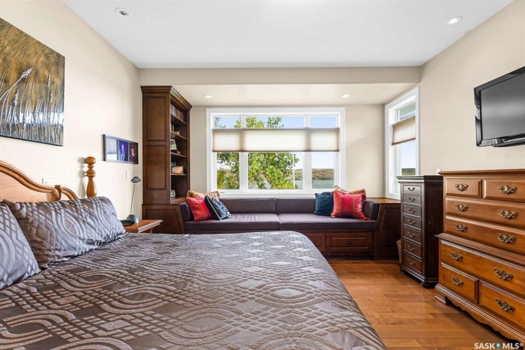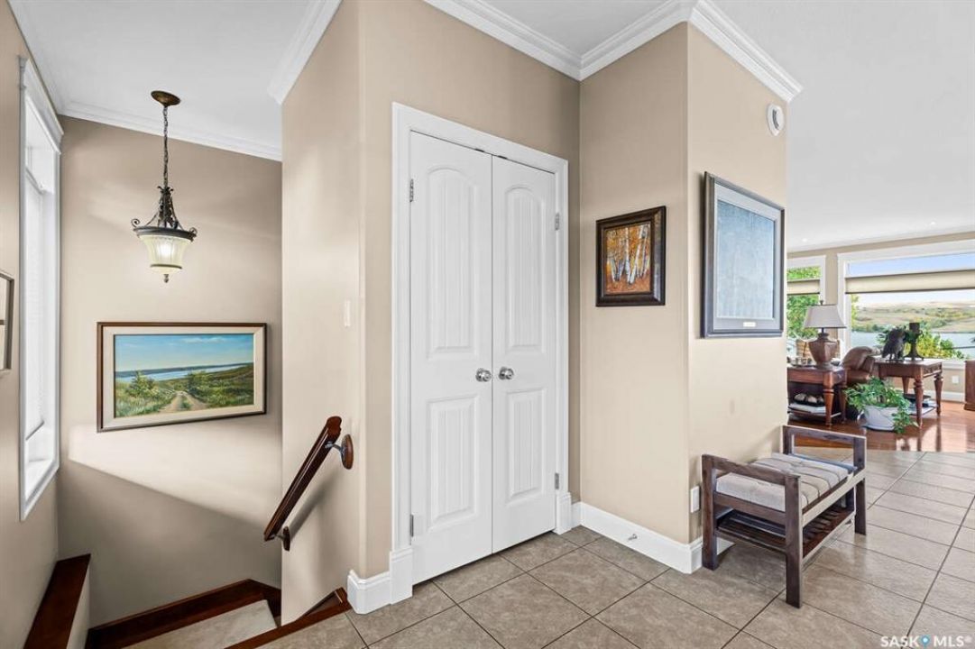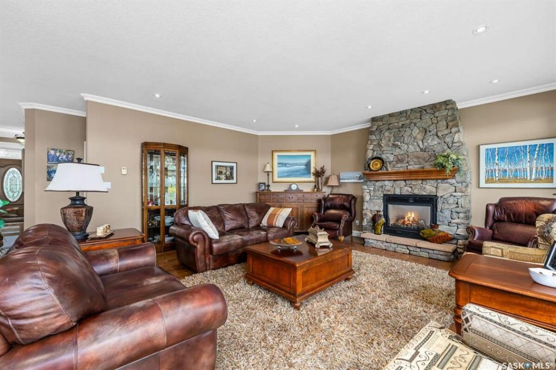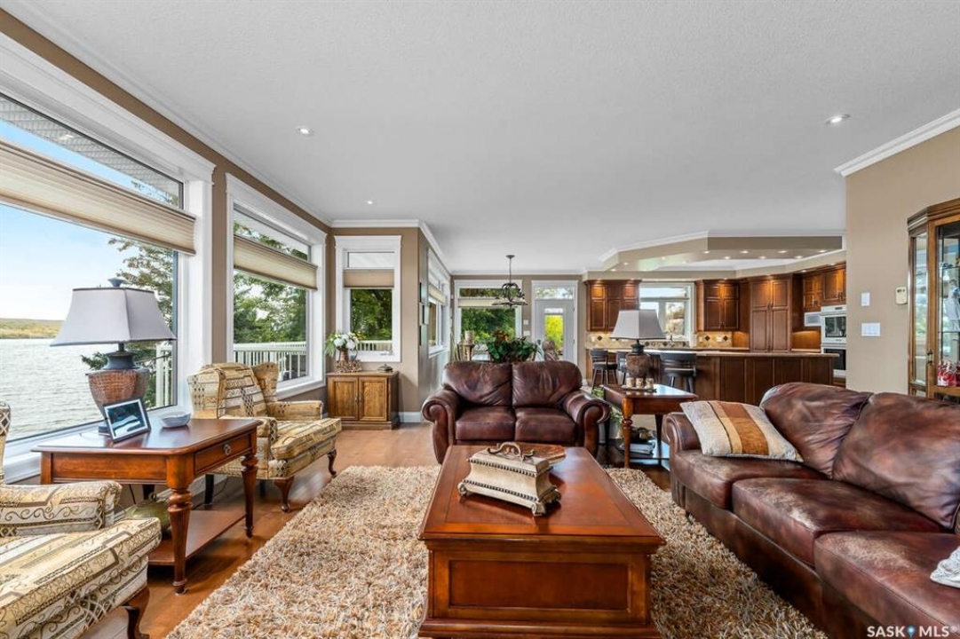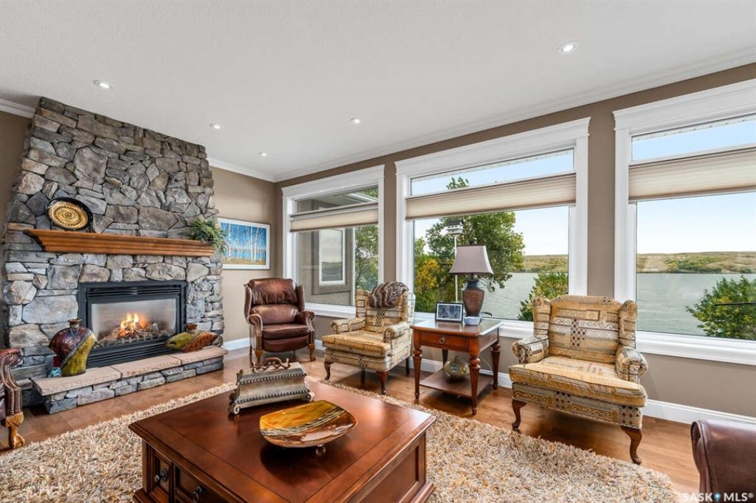 For more information, please click the "More Information" button. Experience lake front living in this exceptional custom home set on 1.4 acres of beautifully landscaped property with breathtaking panoramic views of the lake and surrounding horizon. Offering 3600 square feet of thoroughly finished living space this residence blends elegance, craftmanship and comfort in a truly relaxing setting. A welcoming foyer and open stairwell create an impressive entrance. This is complemented by a spacious office easily convertible into an additional bedroom. The heart of the home is the open concept chef's kitchen showcasing meticulous attention to detail with custom cabinetry, a walk-in pantry, large prep and serving island, double ovens and built-in compactor. From the kitchen exit onto the expansive composite deck, an ideal space for outdoor dining, entertaining and taking in the sweeping lake views. The elegant living room features a dramatic stone-accent fireplace, windows that frame the stunning landscape and premium Mirage engineered hardwood flooring throughout the main living area. Crown moulding adds sophistication to the upper level. The primary suite serves as a peaceful retreat, offering a spa inspired ensuite with a large walk-in closet and a charming window bench perfectly positioned to capture the home's incredible views. The fully finished lower level is designed for both relaxation and entertaining. In-floor heating complements a spacious bar area and media room with built in cabinetry and surround sound. Two large bedrooms, abundant storage, a wine cellar and cold storage room provide both convenience and functionality. Walk-out access leads to a beautifully landscaped yard and patio wired for a hot tub. The grounds are equally impressive featuring mature evergreens and apple trees that enhance privacy while reducing wind and noise.