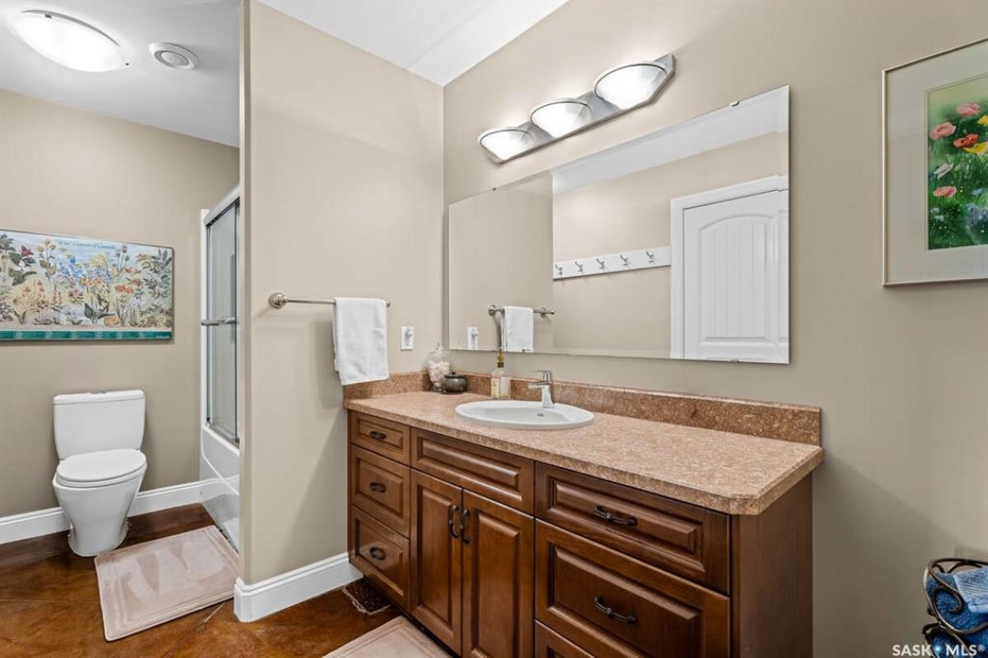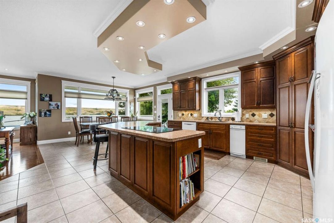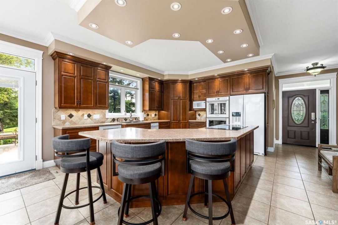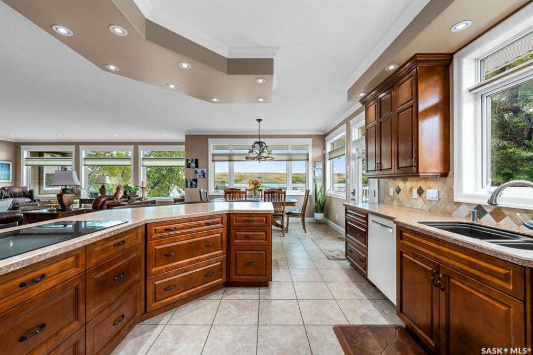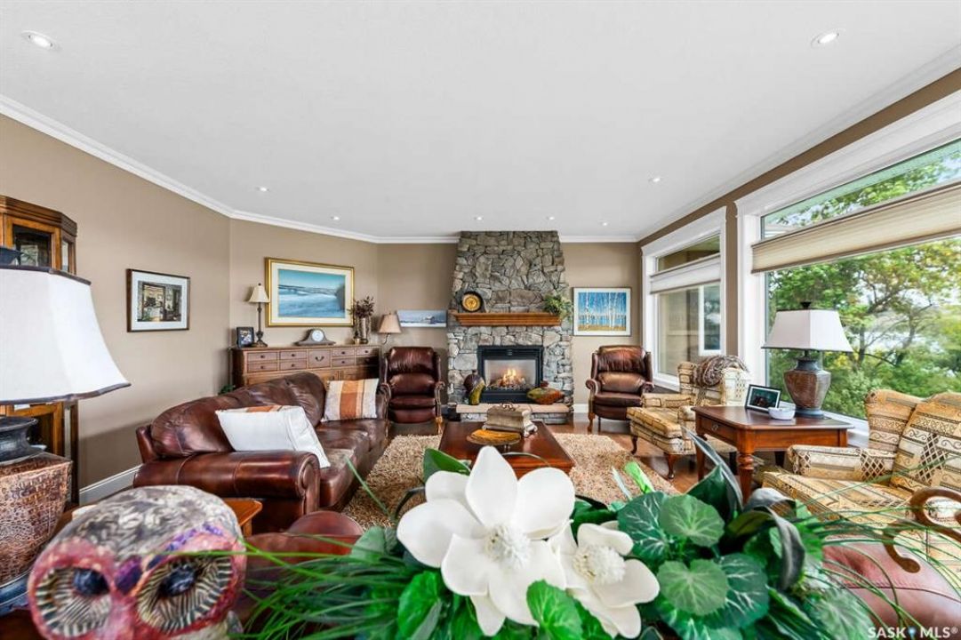 For more information, please click the "More Information" button. Experience lake front living in this exceptional custom home set on 1.4 acres of beautifully landscaped property with breathtaking panoramic views of the lake and surrounding horizon. Offering 3600 square feet of thoroughly finished living space this residence blends elegance, craftmanship and comfort in a truly relaxing setting. A welcoming foyer and open stairwell create an impressive entrance. This is complemented by a spacious office easily convertible into an additional bedroom. The heart of the home is the open concept chef's kitchen showcasing meticulous attention to detail with custom cabinetry, a walk-in pantry, large prep and serving island, double ovens and built-in compactor. From the kitchen exit onto the expansive composite deck, an ideal space for outdoor dining, entertaining and taking in the sweeping lake views. The elegant living room features a dramatic stone-accent fireplace, windows that frame the stunning landscape and premium Mirage engineered hardwood flooring throughout the main living area. Crown moulding adds sophistication to the upper level. The primary suite serves as a peaceful retreat, offering a spa inspired ensuite with a large walk-in closet and a charming window bench perfectly positioned to capture the home's incredible views. The fully finished lower level is designed for both relaxation and entertaining. In-floor heating complements a spacious bar area and media room with built in cabinetry and surround sound. Two large bedrooms, abundant storage, a wine cellar and cold storage room provide both convenience and functionality. Walk-out access leads to a beautifully landscaped yard and patio wired for a hot tub. The grounds are equally impressive featuring mature evergreens and apple trees that enhance privacy while reducing wind and noise.