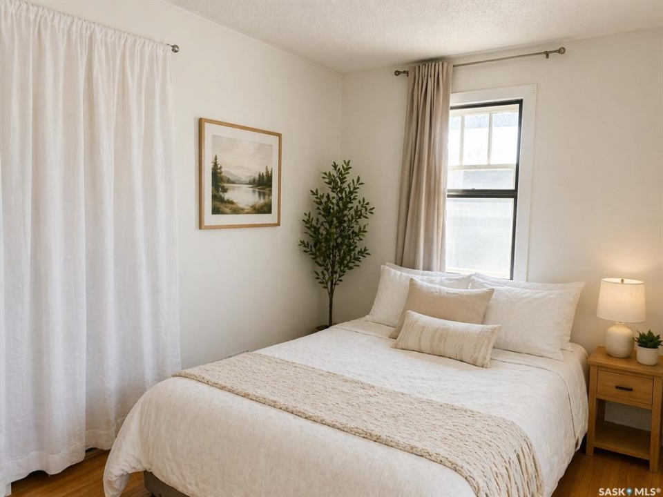 Welcome to this cozy and inviting 864 sq ft home nestled in the quiet community of Blaine Lake. Perfectly suited as a starter home or revenue property, this charming residence offers comfort, character, and great value. The main floor features a bright and airy layout with an abundance of natural light streaming through large windows. The living room and both bedrooms showcase original hardwood flooring, adding warmth and timeless appeal to the space. With two bedrooms and a full bathroom, the home offers a functional and comfortable floor plan for everyday living. The lower level includes laundry and provides ample storage space, adding to the home's practicality. Situated on a mature lot, the property offers a peaceful outdoor setting complete with a storage shed—ideal for tools and seasonal items. An excellent opportunity to step into home ownership or expand your investment portfolio in a welcoming small-town setting.