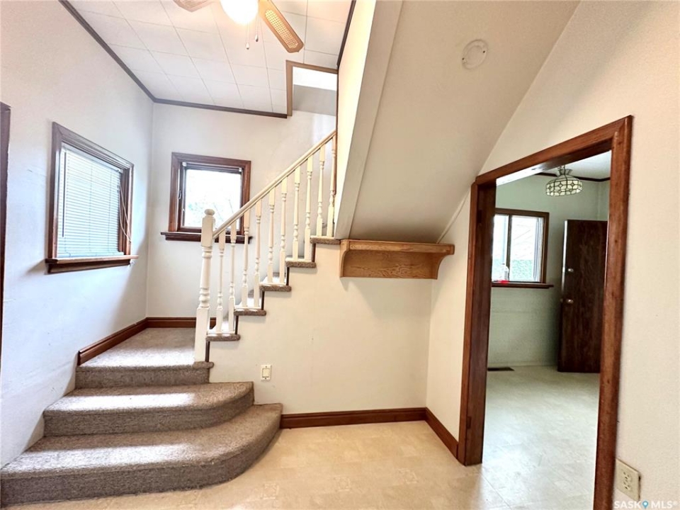 Welcome to this charming and affordable home in a fantastic location—perfect for families, first-time buyers, or anyone looking for value without compromise. Just steps from nearby schools, this home offers everyday convenience in a neighbourhood you'll love. Start your mornings on the inviting front porch, the perfect spot for coffee and quiet moments. Inside, the main floor showcases high ceilings, beautiful original trim, and character-filled moldings that give the home a warm, timeless feel. Upstairs, you'll find three comfortable bedrooms, including a primary suite with a built-in dresser, along with a well-appointed 3-piece bathroom. The basement provides excellent storage space and even includes a bonus shower setup for added flexibility. Outside, the oversized single garage and expansive lot offer plenty of room for parking, projects, or future potential. Set in a great neighbourhood with room to grow, this is an opportunity you don't want to miss. Don't delay, text today! **Photos taken before tenants moved in** buyer to verify finishes and current condition in person.