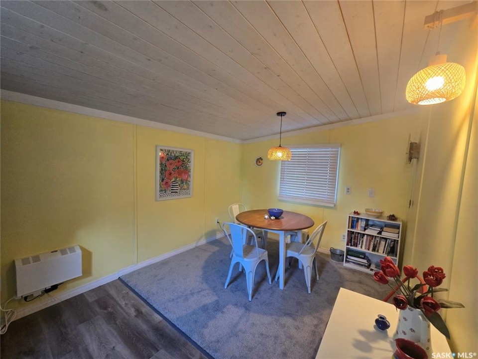 Step into this very tastefully decorated mobile home, with a French Country feel to it!! Nothing to do but just move in!! Located in Stoughton, this cozy and spotless home features a very functional, eat-in kitchen, a sunny southeast facing living room, two good sized bedrooms, a well designed bathroom/laundry combination, and an addition, that is currently being used as a dining room. Many improvements were made to this home in the last two years, including a new metal roof, on the main part of the house, new exterior doors, fresh paint throughout, and lots of new baseboards, crown mouldings, and new flooring in some rooms, as well as several light fixtures. There are also updated windows and blinds everywhere, except the bathroom. The very spacious dining room has new panelling and a new ceiling. Step outside to a large, chain link fenced back yard, featuring a double, heated garage!! This home is on it's own, owned lot, so that means no rental fees. Fabulous starter or empty- nester home, and you must see for yourself, how charming this place is!!