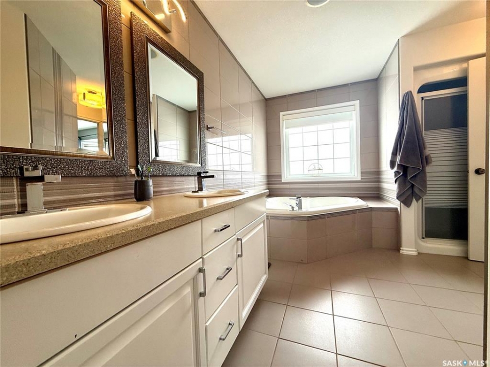 Welcome to this beautifully crafted executive modified split level, perfectly situated in one of the community's newer subdivisions. Offering 1,504 sq ft above grade, this thoughtfully designed home blends style, comfort, and functionality for modern family living. The unique layout features a private primary retreat on the upper level, creating a peaceful and spacious escape, while two well-appointed bedrooms on the main floor and two additional bedrooms in the fully developed basement provide plenty of room for family and guests. With **five bedrooms in total—an uncommon and highly desirable feature, as four-bedroom layouts are more typical—**this home offers exceptional flexibility for growing families, guests, or home office space. At the heart of the home, the open-concept kitchen flows seamlessly into the dining and living areas—ideal for entertaining or everyday life. The kitchen also features built-in ceiling speakers, enhancing the space whether you're hosting or enjoying a quiet evening at home. You'll appreciate the added comfort of heated tile floors in the kitchen and bathrooms, along with three fireplaces throughout the home (two electric and one gas), creating warmth and ambiance in every season. The exterior showcases attractive stucco and cultured stone, delivering excellent curb appeal. Step outside to a beautifully landscaped yard that has been meticulously maintained, offering a perfect outdoor space to relax or entertain. The 24' x 24' heated garage adds both convenience and practicality. Additional updates include shingles replaced two summers ago, providing peace of mind for years to come. Located close to MC Knoll Elementary School and St. Michael's French Immersion School, this home offers an ideal setting for families seeking quality education and a desirable neighborhood. This is a rare opportunity to own a move-in ready executive home in a prime location—where comfort, quality, and lifestyle come together.