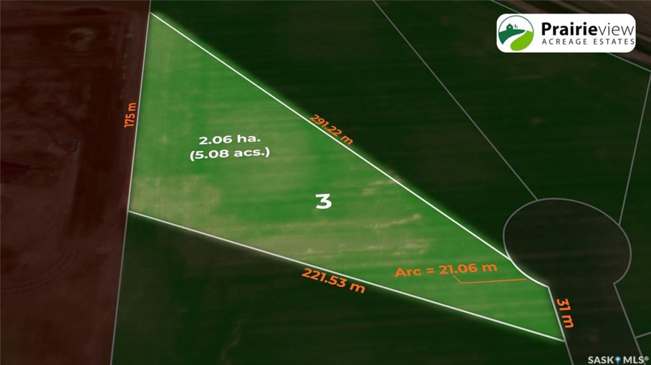 Build your dream home in Prairieview Acreage Estates! Located on paved HWY 734, just 10 minutes from Regina's north end, you will find this country residential acreage community. Escape the hustle of the city and live the acreage lifestyle you have been dreaming of! Gas and power services are provided to the property, making building your dream home a breeze. The acreages in the development range in size from 4.6 acres to 12.69 acres. These large acreage lots provide ample opportunity for creative home designs. The location is just minutes from three golf courses (Flowing Springs, Deer Valley, and Sherwood Forest Country Club). Bus access is provided to Lumsden Elementary and Lumsden High School, offering both English and French programs. Another bonus—choose your own builder! Don't miss the opportunity to visit Prairieview Acreage Estates today and experience the unmatched views and peaceful serenity of country living at its finest. Visit the developer's website at �https://www.prairieviewestates.ca