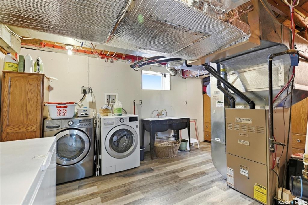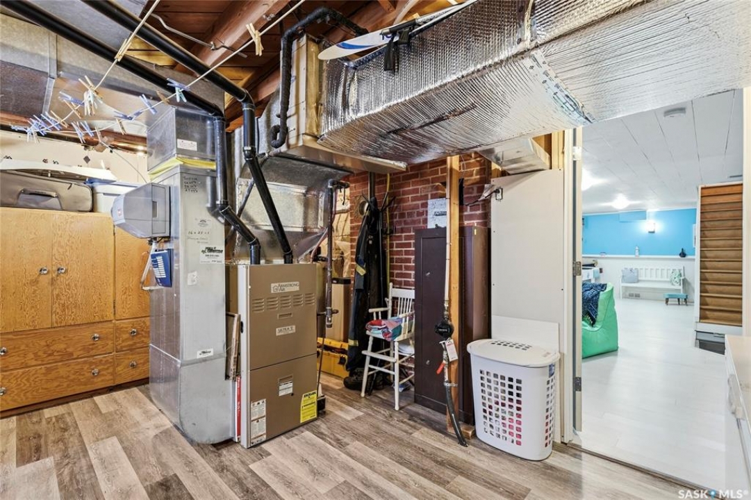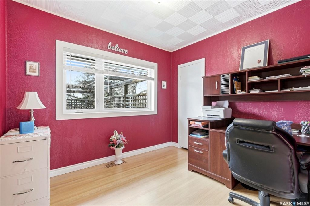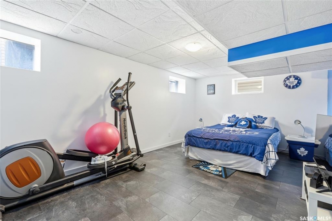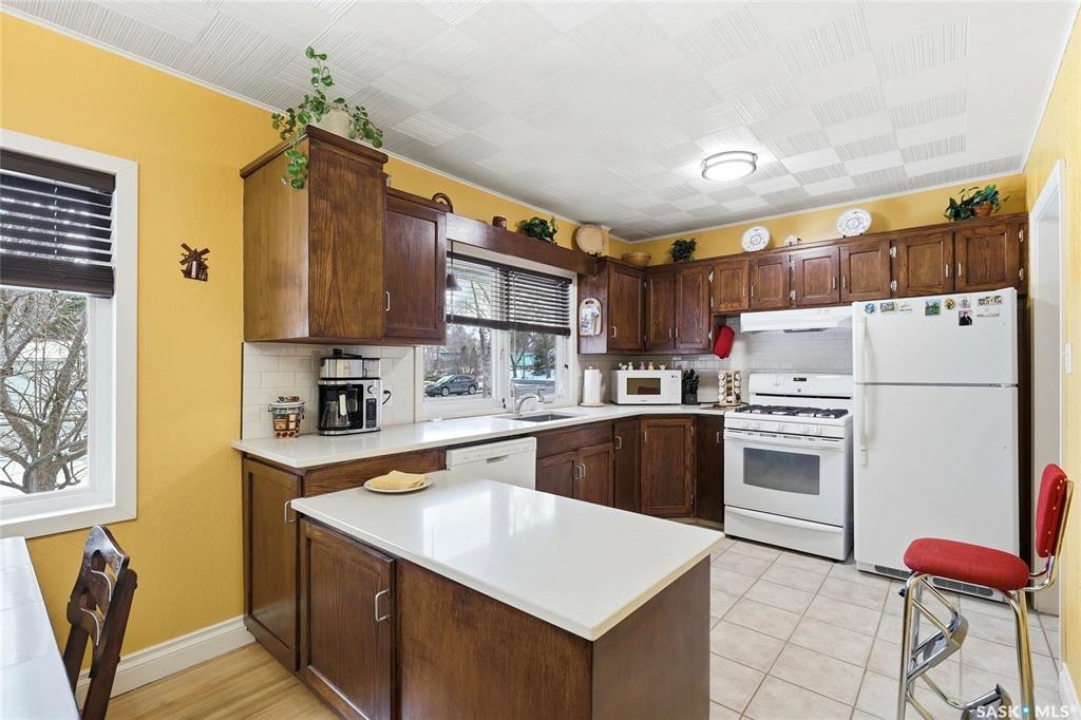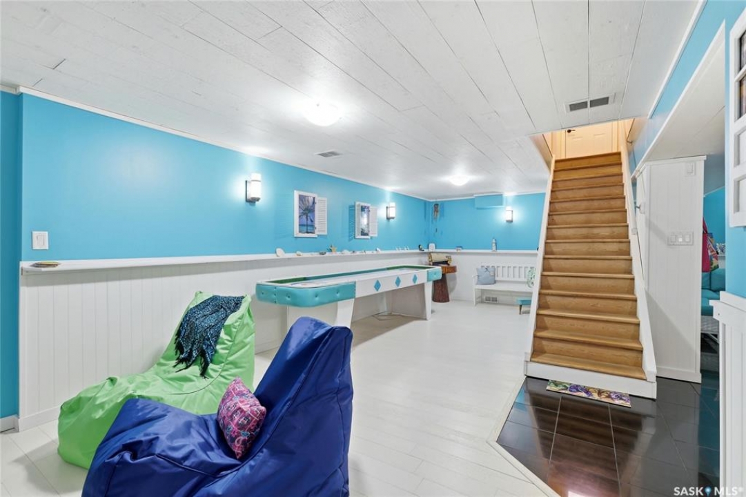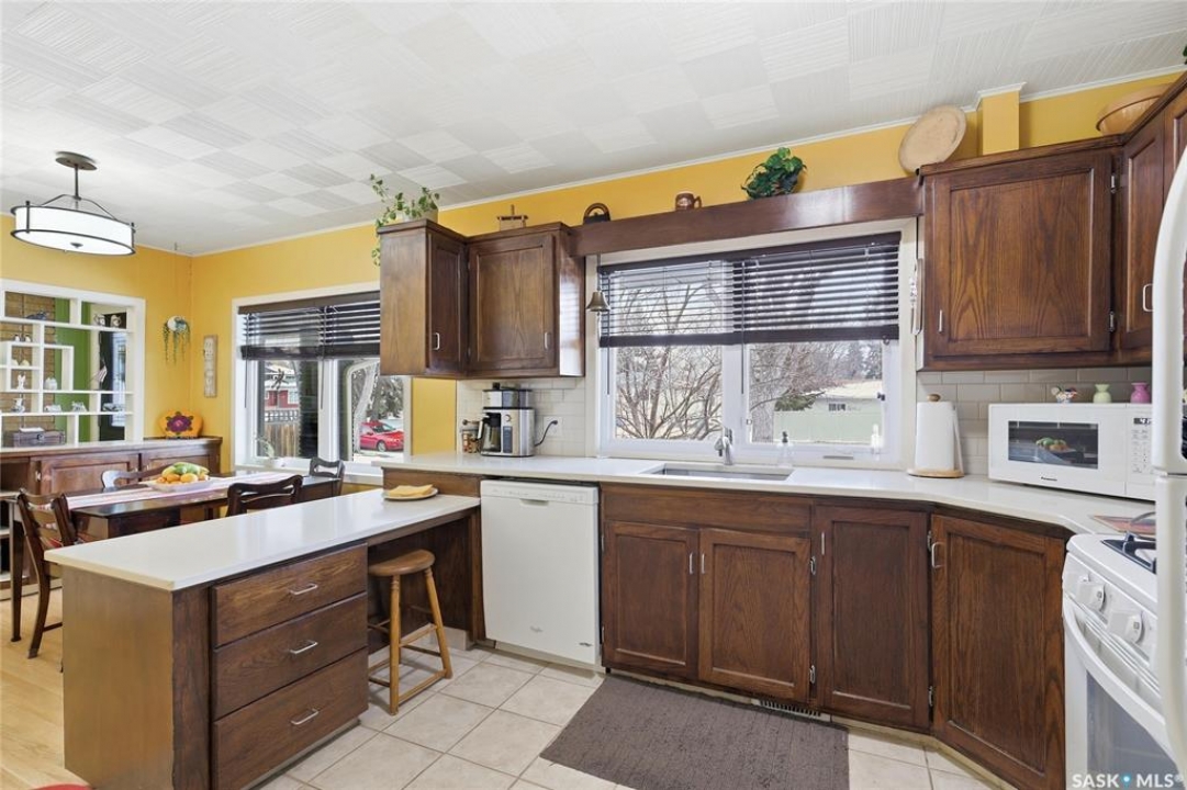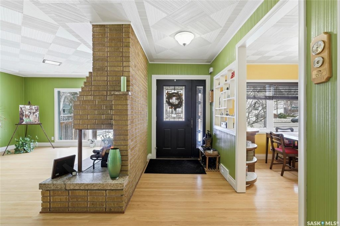Midcentury charm meets modern conveniences in exclusive Lakeview. Regina's Lakeview is just a short walk to Wascana Park where you can lose yourself among the paths along the water. 10 minutes the other direction you will find a children's splash park and a par 3 golf course. University of Regina and Sask. Polytechnic are also within walking distance. K-12, both public and separate schools are in the area. As soon as you enter the home you cannot miss the original character perfectly aligned with today's luxuries. Floor to ceiling windows illuminate the living room with natural sunlight bringing the outside in. Brick and Tindal Stone fireplace gives separation between the kitchen and living room. (fireplace has never been used by owner) Kitchen has updated espresso cabinetry with endless quartz countertops and more large east-facing windows. The walk-in pantry has space for additional food items and small appliances. Good-sized eating area can accommodate a medium sized table. All kitchen appliances will remain. Main hall leads to three family-sized bedrooms and updated bathroom. Bathroom offers a deep soaker tub with subway tile surround and vanity with matching wall cabinet. Primary bedroom has double closets and garden doors that lead to your personal retreat. Escape the bustle of life to your own backyard paradise surrounded by towering trees with privacy and quiet. Enjoy the hot tub or family time on the deck. Lower level is warm with added insulation and has space for the entire family. Large rec room, full bathroom, extra large bedroom (window is large but may not meet current egress codes) for teenager or convert to a gym and utility /laundry with additional storage. Maintenance free exterior. Single detached garage. This home is move-in-ready. Just unpack and enjoy. The many upgrades include: sewer line private side and back flow valve, insulated and air-sealed basement R28, new wiring in basement, some new PVC triple pane windows, shingles.