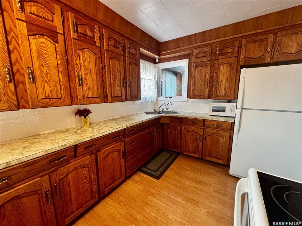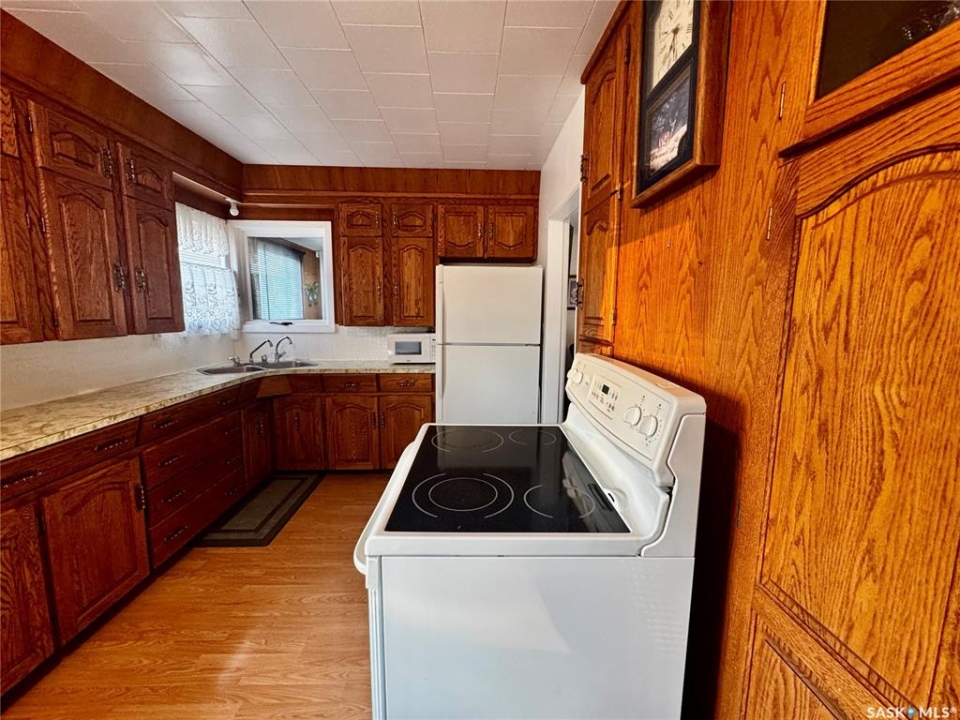 An affordable well kept home with an extra large 3 car garage awaits you in the town of Sturgis SK! Driving up to the property you will be welcomed to a concrete drive way that leads to detached garage. There is lots of room to store your vehicles, quads, snowmobiles, etc. The garage is fully insulated with metal roofing. Entering the home, you will be welcomed to a separate porch area. A few steps will take you into the large living room area. Around the corner is the kitchen with included fridge and stove. Enjoy meals in the dining room area with south and west facing windows. Off the dining room is direct access to the 117 square foot deck. The main has 3 bedrooms (1 currently used as an office), and a 4-0piece bathroom. The basement is open for development and features a bonus room (currently used as a craft room), and rec room area. Utility area features HE Gas Furnace, Gas Water Heater (2023), water softener, washer, and dryer. This property is located very close to Sturgis School (K-12). This property is not for rent or rent to own.