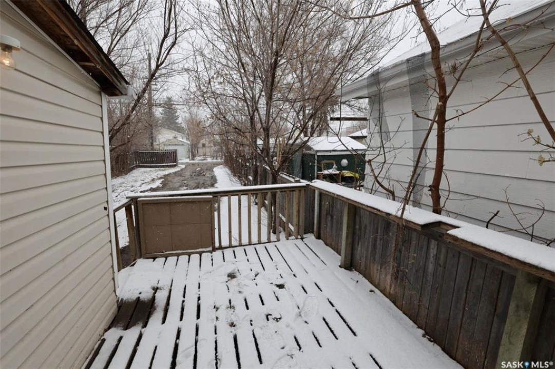 Do not let the listing price fool you! This renovated, move in ready house is sure to impress and would make the perfect starter home or investment property! This location is located just 1 block from Highland Park, St. Luke Elementary School, directly beside a bus stop, as well as all downtown amenities, including, the Brandt Center and Mosaic Stadium which are all just a short walk away. The main floor offers a nice porch with large windows, living room, bedroom with views of the backyard, 4-pc bathroom, mudroom, dining area with a galley style kitchen with plenty of cabinets and drawers. New LVP flooring throughout, fresh paint, newer kitchen cabinets and a professional clean. The house feels bigger than the square footage would suggest. The lower level is partially finished. You will find hook ups for a laundry area, high efficiency furnace, 100 amp electrical panel and an option to add a second bedroom. There is even an area that is roughed in for a second bathroom! The back yard has a large deck that would be great for summer BBQ's, partially fenced yard and parking big enough for 2 vehicles! If you're looking to get into the market at a great price, don't walk, run to see this one!!