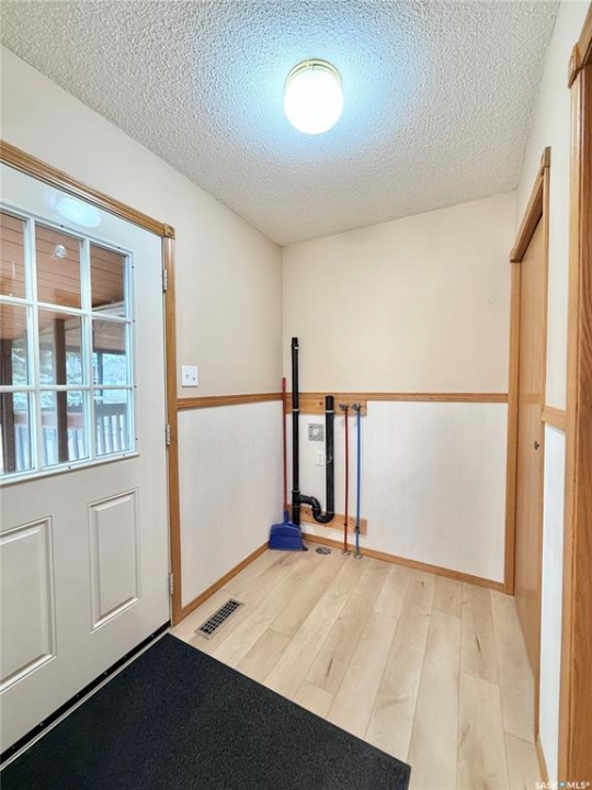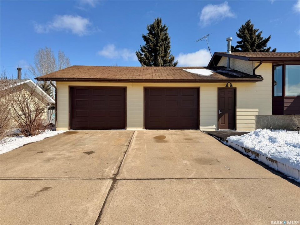 Great location!! This 1,275 sq ft family home is situated on a large 100 ft x 120 ft lot, ideally located close to schools in Outlook, SK. The main floor features fresh paint in the living areas, new laminate flooring throughout, updated receptacle and duct covers, and some new light fixtures, giving the space a clean, refreshed feel. You'll also find main floor laundry hookups and a spacious primary bedroom with a 2-piece ensuite. Mechanical features include a high-efficiency furnace, power vent water heater, central air conditioning, and central vacuum for everyday comfort. Outside, there's plenty of room for family living with a covered, screened-in back deck, chain link fenced yard, and RV parking. The double concrete driveway and extra spacious double attached garage with a small workshop area add even more functionality. Located in Outlook, SK, a welcoming community with schools, parks, and amenities, this property offers great space for a growing family with room to make it your own.