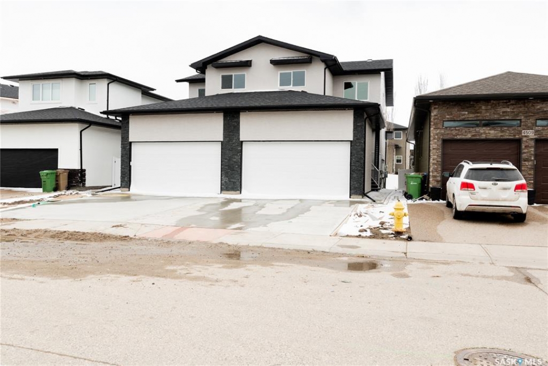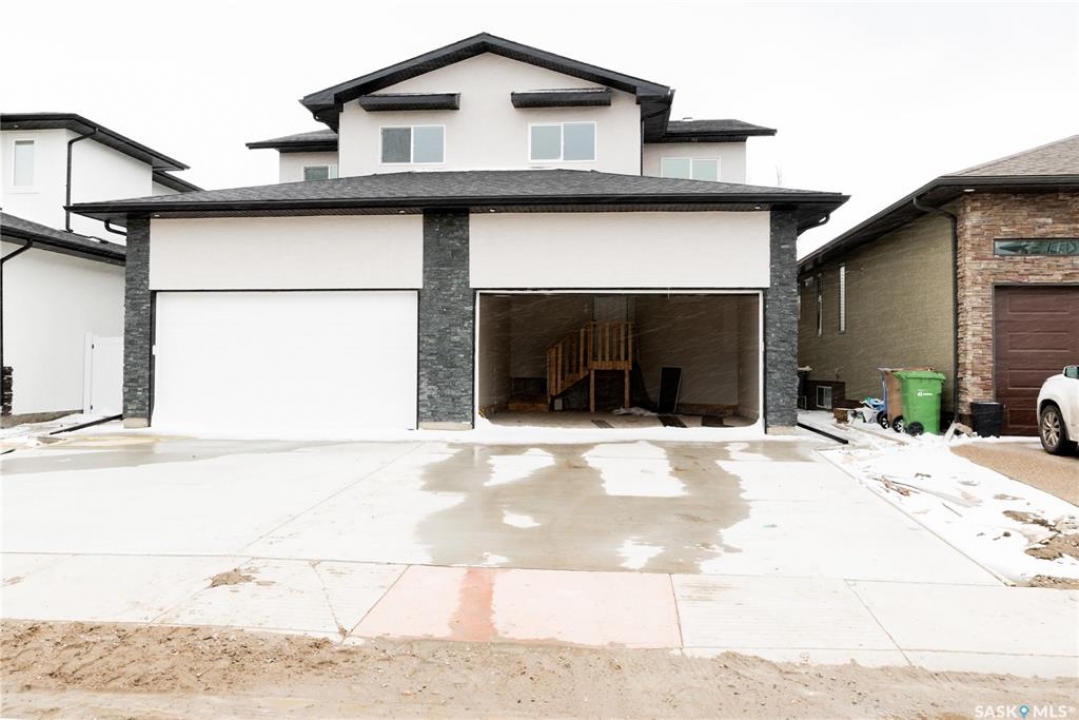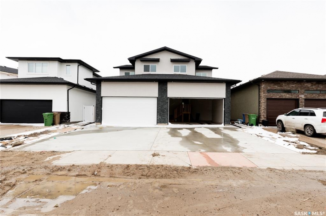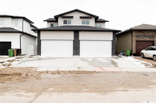 Welcome to this brand-new, beautifully designed two-storey full duplex (both units) in the highly desirable Greens on Gardiner, offering a perfect blend of style, space, and functionality. Both units feature the same thoughtfully planned layout, with a bright and inviting main floor that includes a spacious living room, a well-appointed kitchen, a dining area, and a convenient 2-piece bath, all finished with modern vinyl plank flooring throughout. Upstairs, each unit offers a generous primary bedroom with a private 4-piece ensuite, two additional bedrooms, a full 4-piece bathroom, and the convenience of upper-level laundry. The fully developed basement in both units adds even more living space with two additional bedrooms, a large recreation room, a 4-piece bathroom, making the property ideal for extended family, guests, or flexible use. Each unit also includes a heat recovery unit, and a sump pump for added comfort and peace of mind, along with the convenience of a 2-car attached garage. Both units also have a side entrance for future use, while the brand-new construction delivers the fresh, modern appeal today's buyers are looking for. With its smart layout, premium features, and excellent location, this full duplex (both units) stands out as a fantastic opportunity in one of Regina's most sought-after neighbourhoods. Don't miss out on this one — book your showing today.