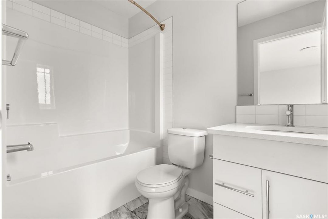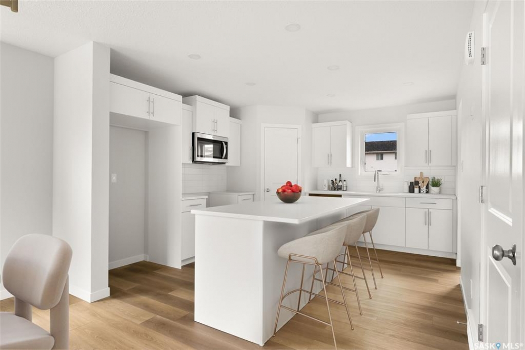 Welcome to Homes by Dream's Ava that's move in ready in Eastbrook at 5416 Nicholson Avenue. This brand new 1,443 sq. ft. single family laned home is located near shopping, restaurants, an elementary school, walking paths & parks . The open concept main floor allows for an abundance of natural light to flow through the large living room window at the front of the home, centralized dining area and the spacious L-shaped kitchen at the back of the home. The kitchen features a large centralized island that can accommodate seating and an abundance of cabinetry, quartz finished counter space and ceramic tile backsplash. There's a separate mudroom area and a 2 piece bath at the rear of the home. The 2nd floor consists of a large primary bedroom, ensuite and walk in closet. The 2nd floor also includes 2 additional bedrooms at the rear of home, a 4 piece bath and laundry. There's a side entry door and the basement is ready for future development. This home also includes a 20'x22' concrete parking pad & a DMX foundation wrap.